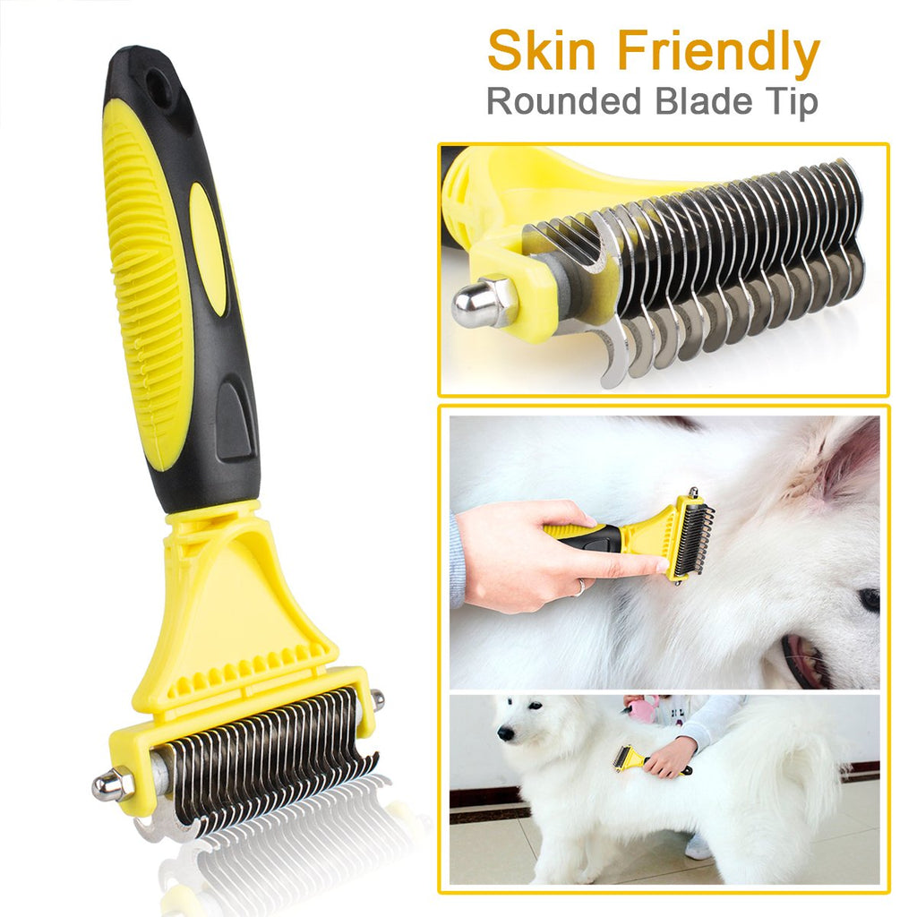 Dematting Dog Hair Tool Kit - This 2-in-1 pet grooming tools demate tangles, move the loose hair, and detangle hairballs, groom your pets with comb perfectly.