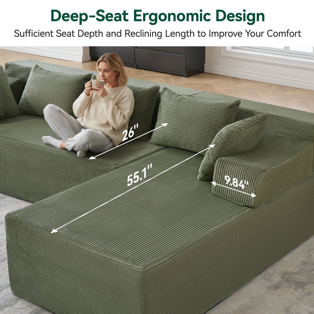 Behost 105" Modular Sectional Sofa Couch with Pillows, Deep Seat L Shaped Sofa for Living Room, Green