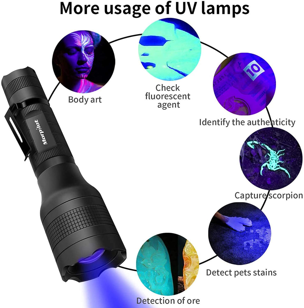 - ❤PRACTICAL FUNCTIONS OF UV- Make the traces that are invisible visible to the naked eye; Easily detect dried-up urine and stains from pets on carpets, curtains or drapes; Detection of fake banknotes, driver's license, ID cards or passports