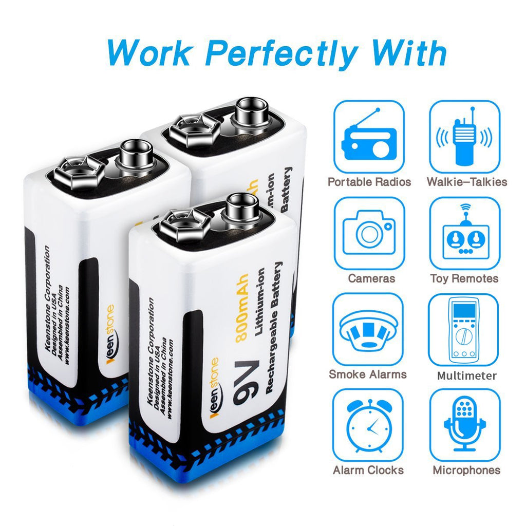3 Pack 9V 800mAh Rechargeable Batteries and Charger