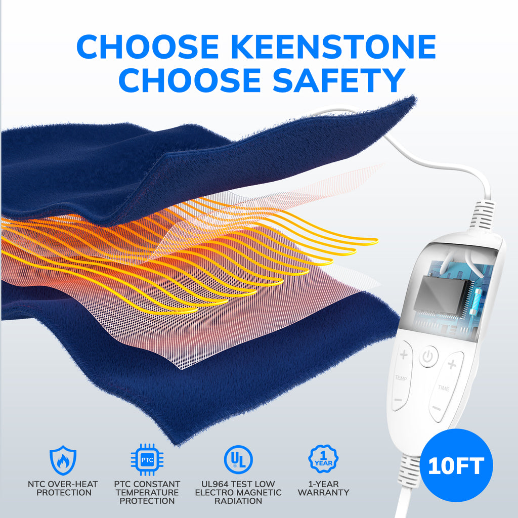 🎁Super Cozy Flannel: Keenstone electric blanket is made of double-sided flannel fleece fabric, the fine fluff not only has good warmth retention, but also has a soft touch. The thin wires provide warmth throughout the electric throw blankets without the discomfort caused by thick lines. Wrap up your entire body in the softest warmth with this incredibly cozy flannel heated throw blankets wherever you are on the couch, in bed, in the office or anywhere else.