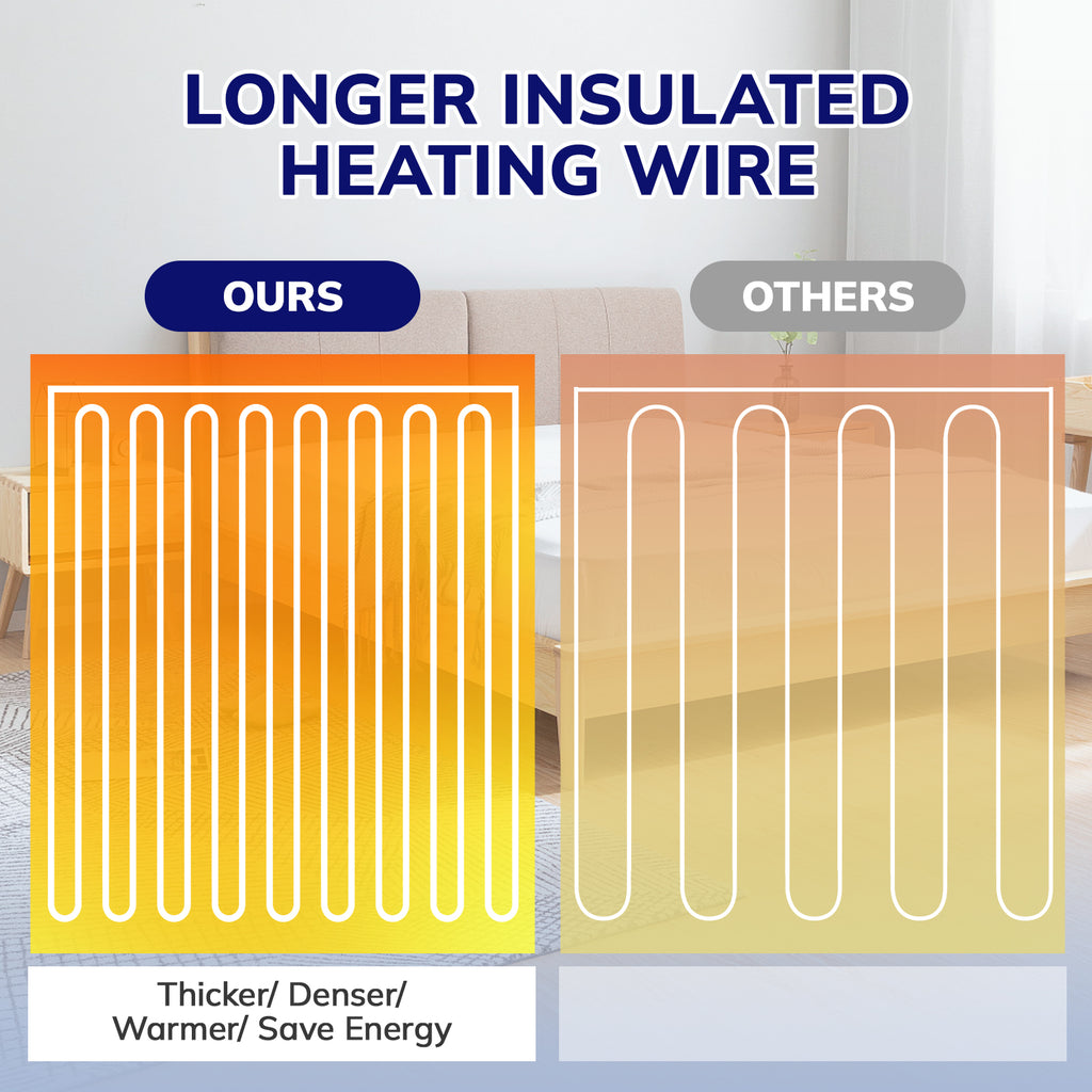 ⏲️10 Timer Settings: Auto shutoff function can be set for 1,2,3,4,5,6,7,8,9 or 10 hours, perfect for staying cozy, warm, and safe as you doze off without raising the electricity bill (refer to the user guide for more info).
