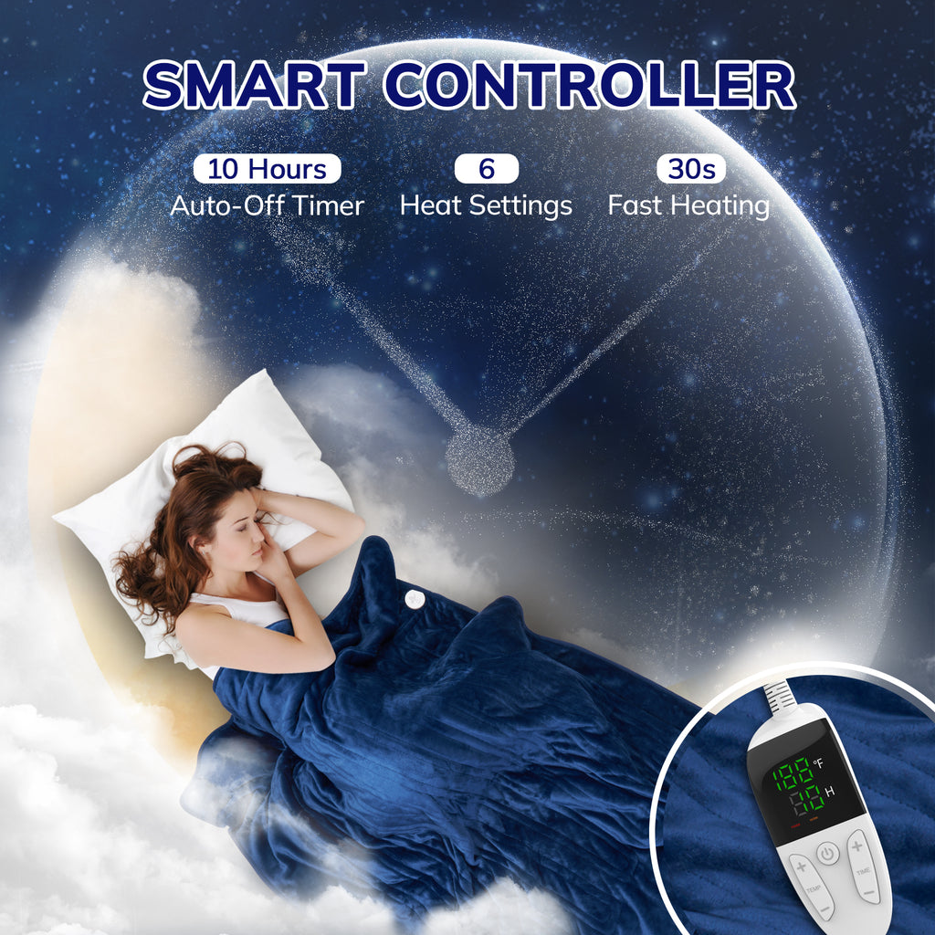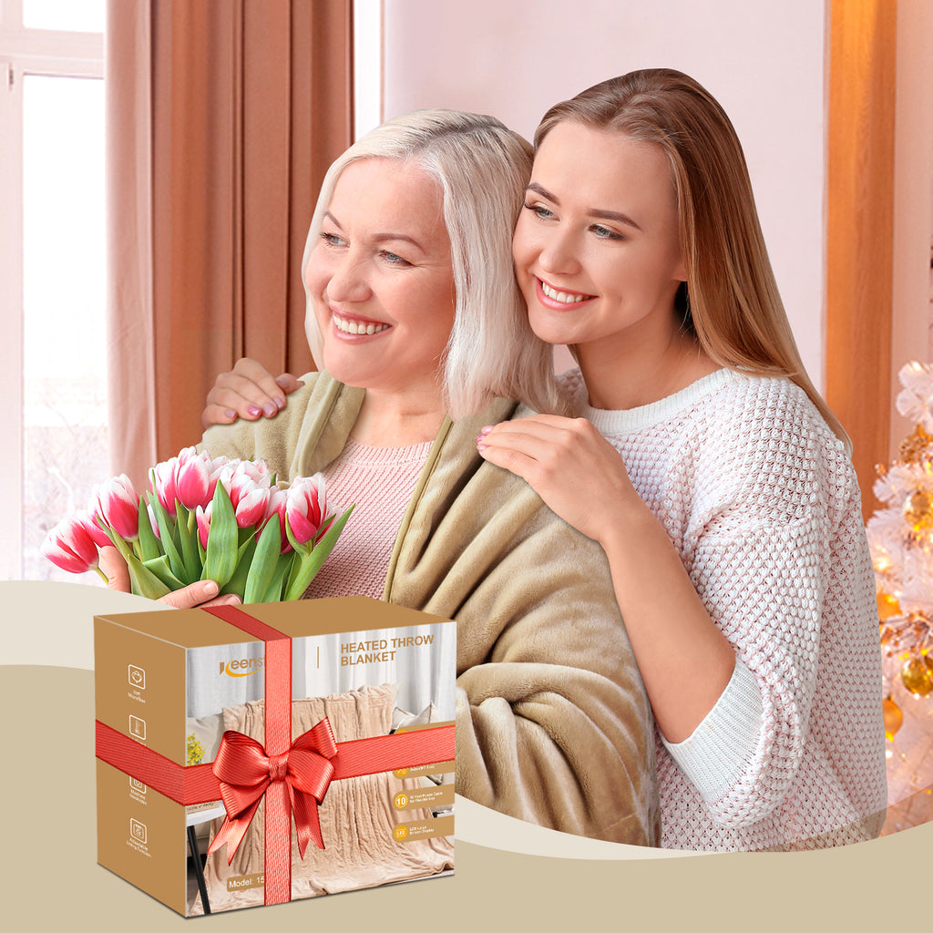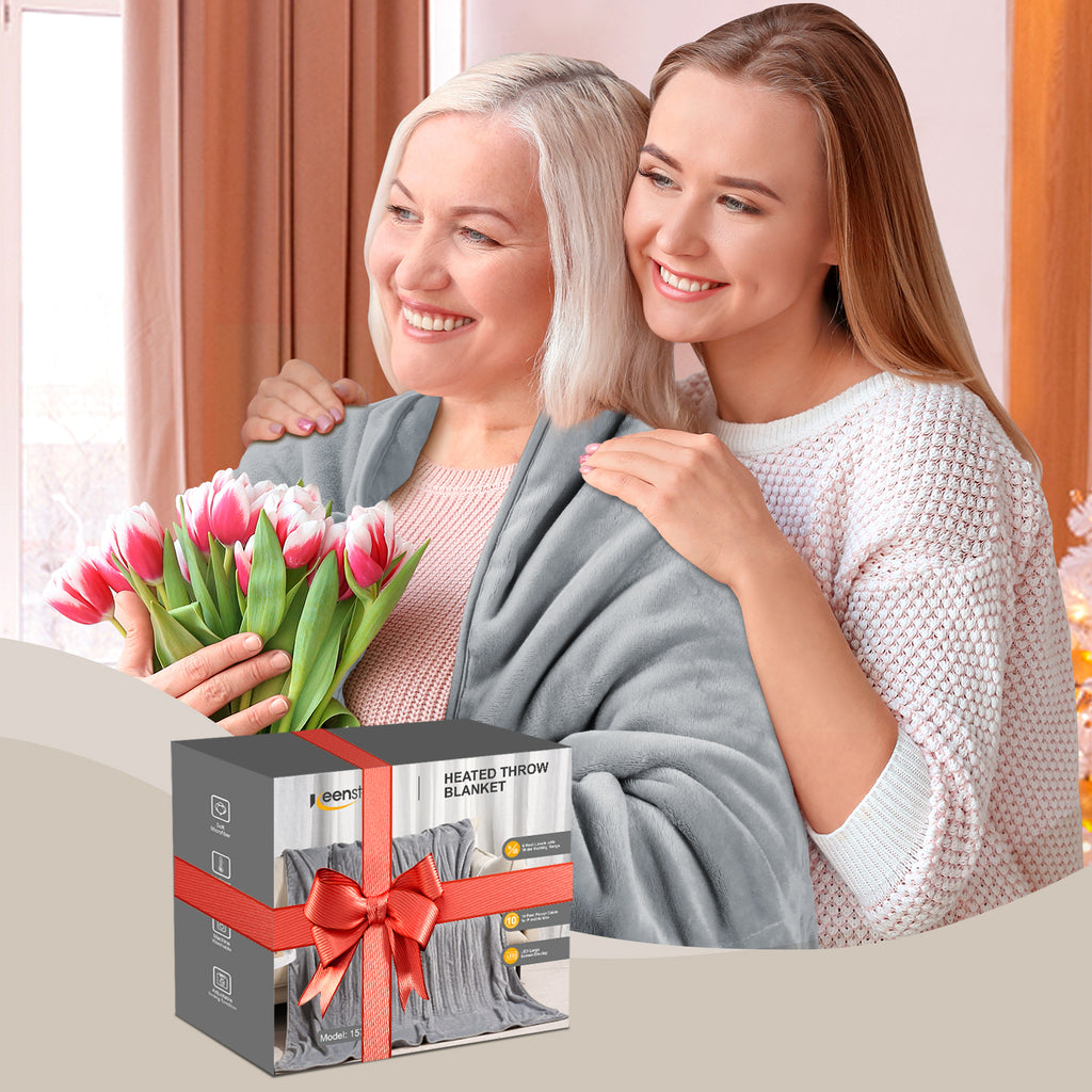🌞Fast Heating in 5 Minutes: Electric heated blanket offers instant warmth during the cold time. No need to wait, you can feel the warmth all over your body within 5 minutes, whether you are taking a nap or sleeping through the night, put on a blanket without worrying about the cold, it provide enough warmth. A thoughtful and practical gift for mom or others.