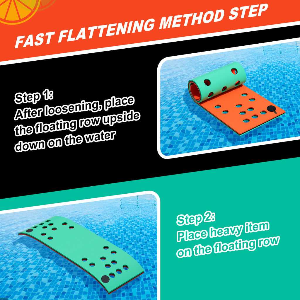 🌊Convenient to Roll up and Store -- this floating water pad is lightweight and easy to handle. Two straps are included to help secure the floating pad after rolling up, which is convenient to carry and store. When not need it, you can store it in a small area without taking much room.