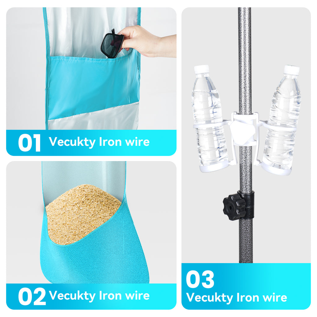 ☂ STRONG STRUCTURE & STURDY: The beach canopy structure is supported by 4 strong steel ribs. With 4 large and deluxe sand pockets at each corner to make the beach cabana stable on beach. Air-vent designed to facilitate air flow for more stability.