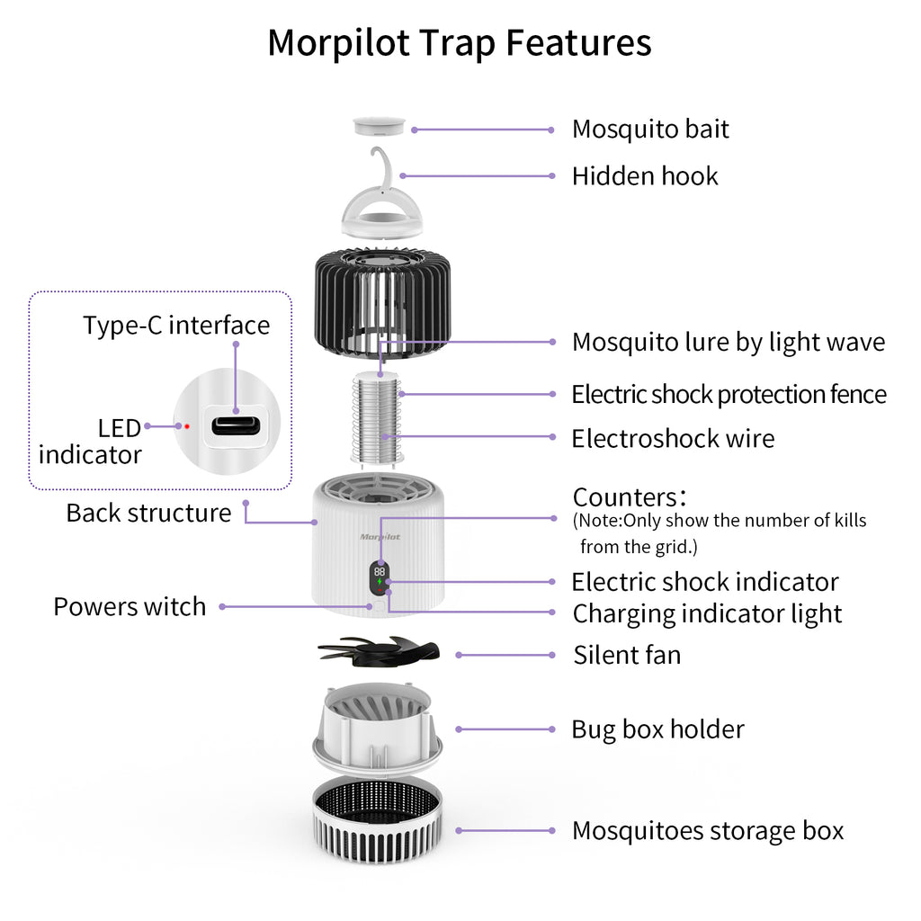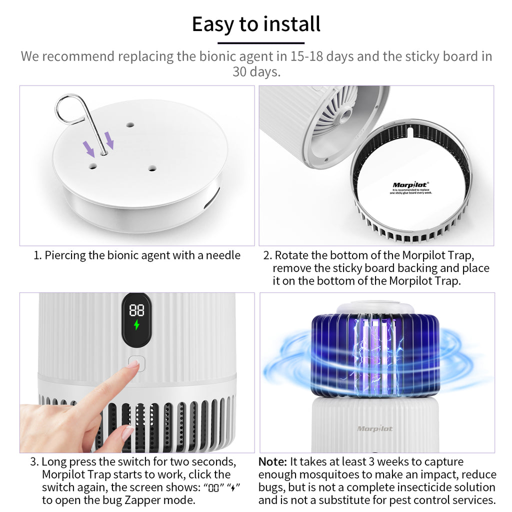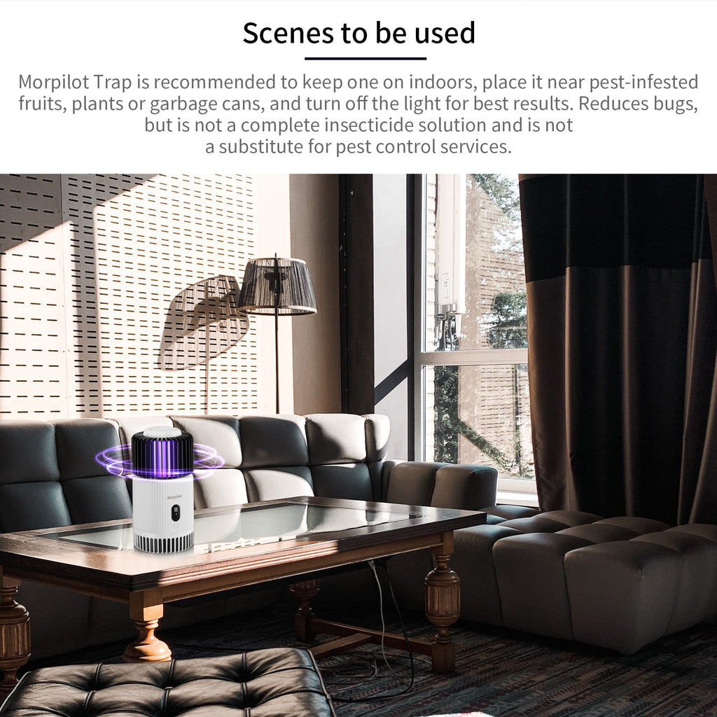 【Warm Usage Tips】: Morpilot Trap is recommended to keep on indoors, place it near pest-infested fruits, plants or garbage cans, and turn off the light for best results. Reduces bugs, but is not a complete insecticide solution and is not a substitute for pest control services.