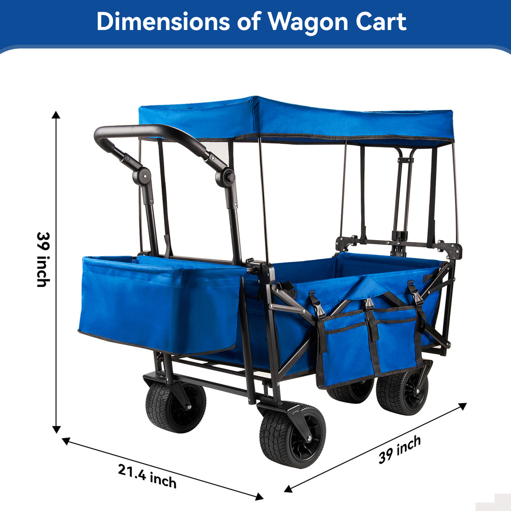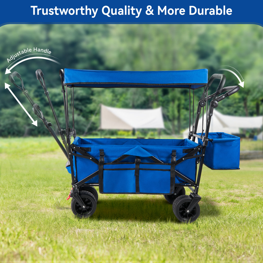 Collapsible Garden Wagon Cart with Removable Canopy, Keenstone Foldable Wagon Utility Carts with Wheels and Rear Storage, Wagon Cart for Garden Camping Grocery Shopping Cart,Blue