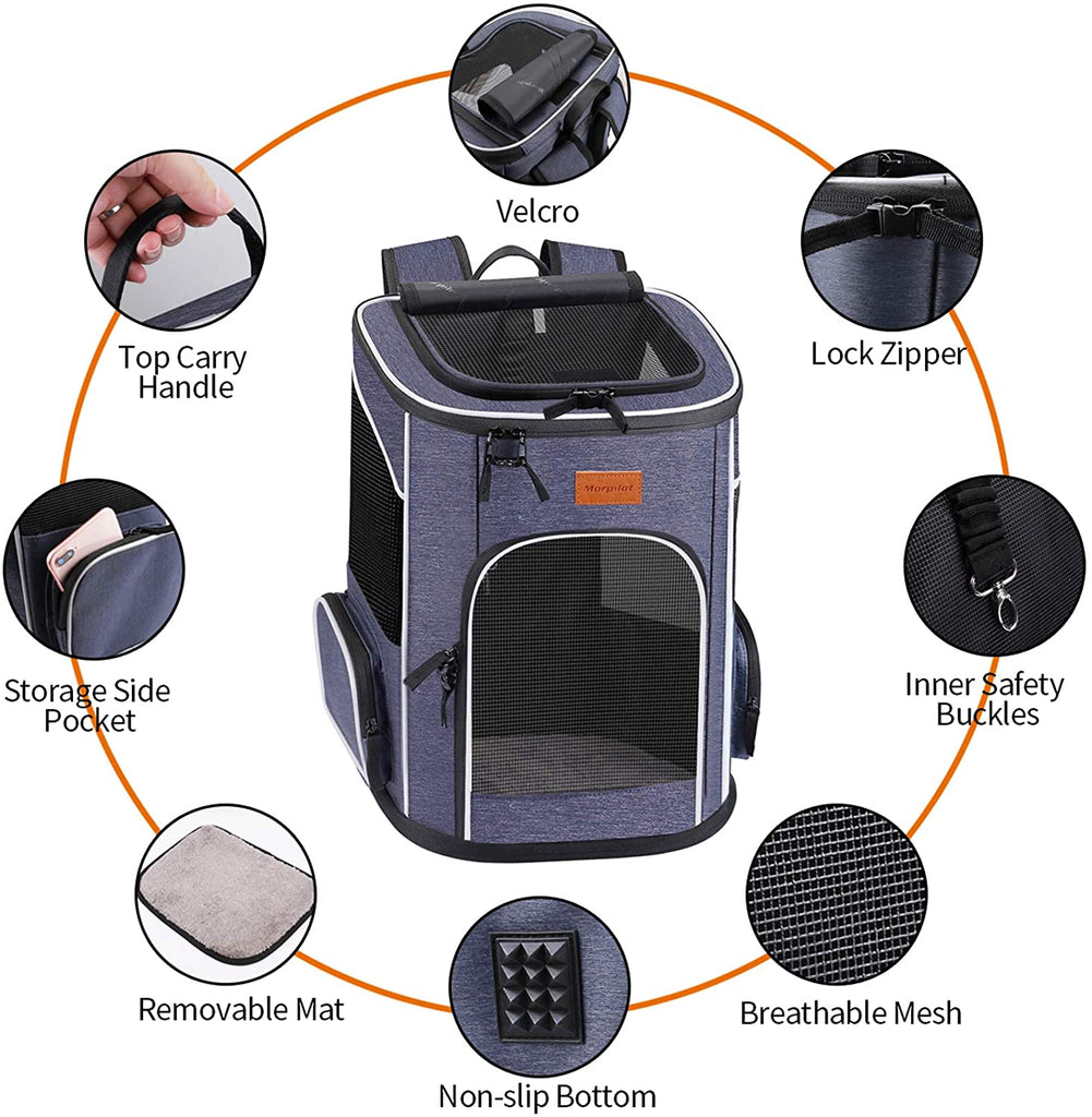 morpilot Dog Backpack Carrier, Foldable Cat Backpack Carrier for Small Cats and Dogs, Ventilated Design Pet Travel Carrier Backpack with Inner Safety Strap, Cat Carrying Bag for Travel Hiking Camping