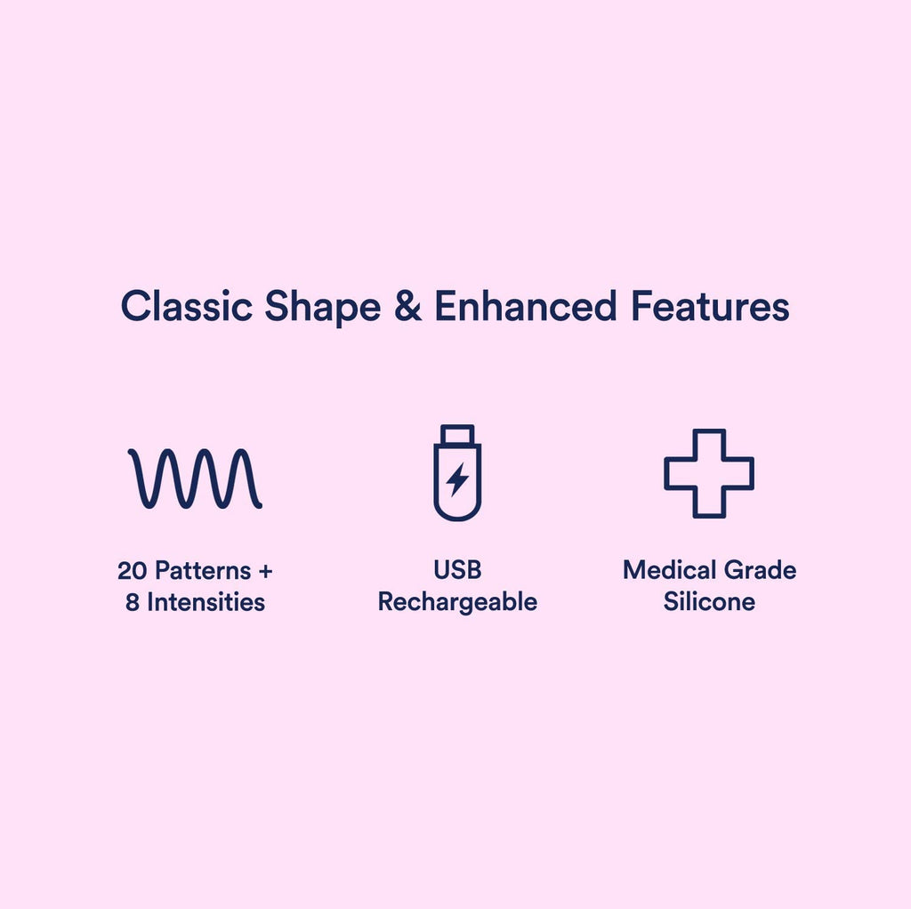 20 Patterns & 8 Speeds - Features 8 different speeds and 20 patterns. Usb-rechargeable Extra Smooth - Crafted with a high grade silicone that’s softer and smoother than ever. Long Battery Life - 2+ hours of use allows for extended relaxation. Powerful - Very easy to use so it's great...