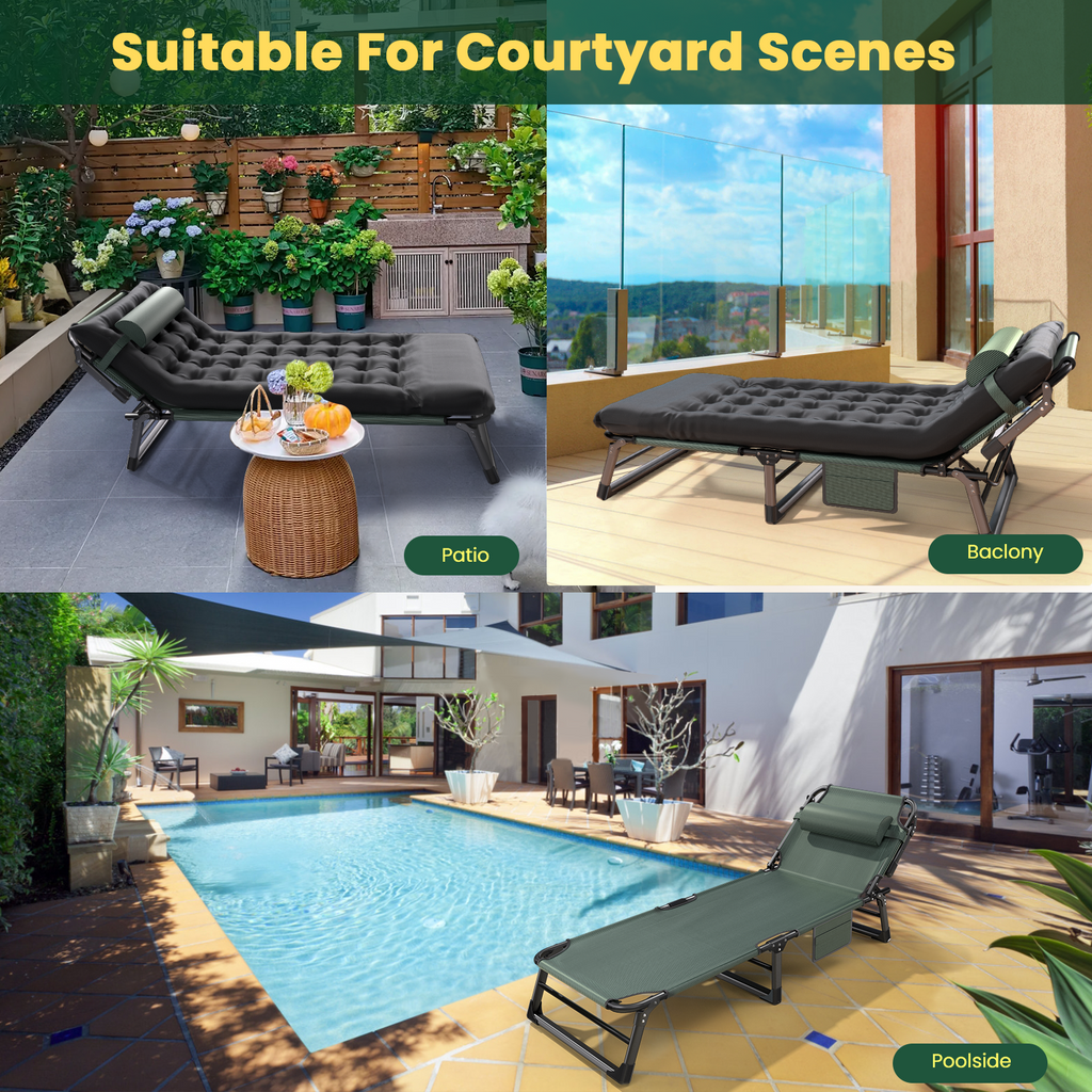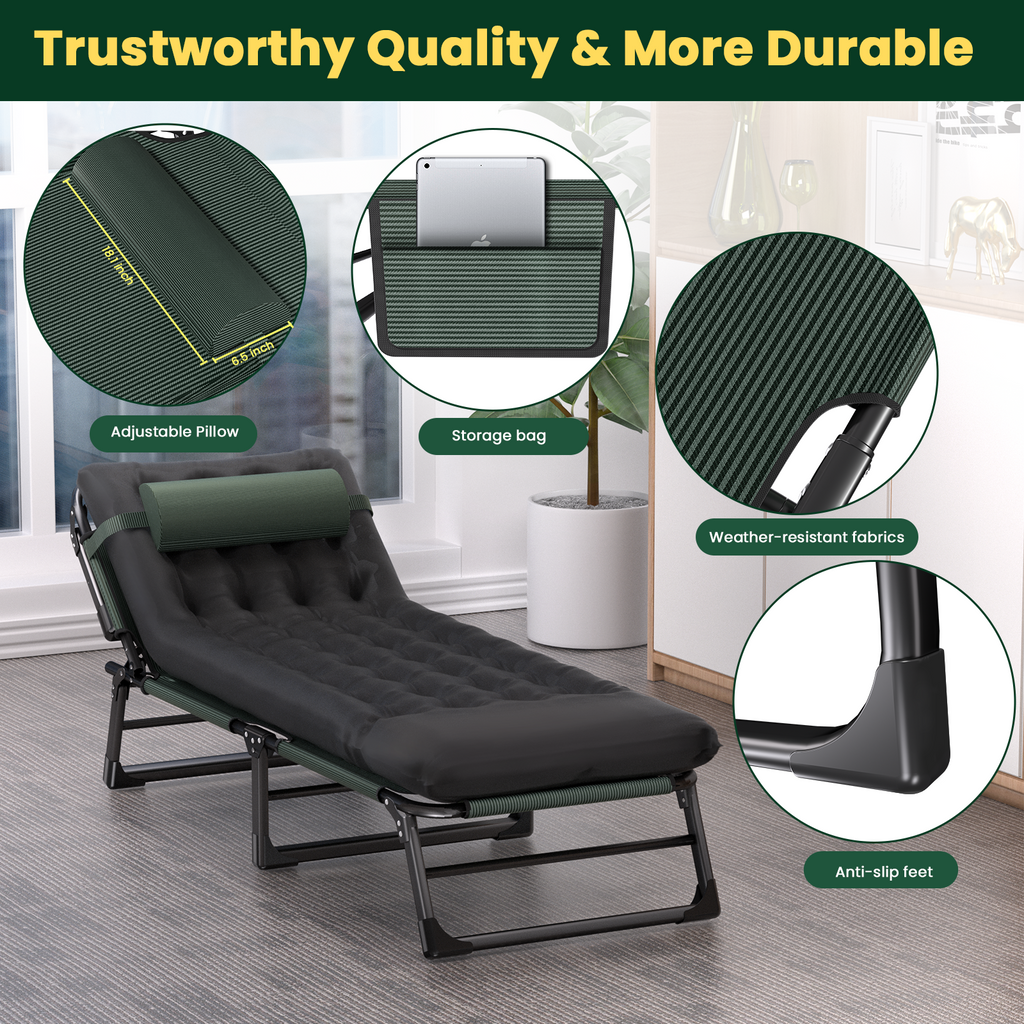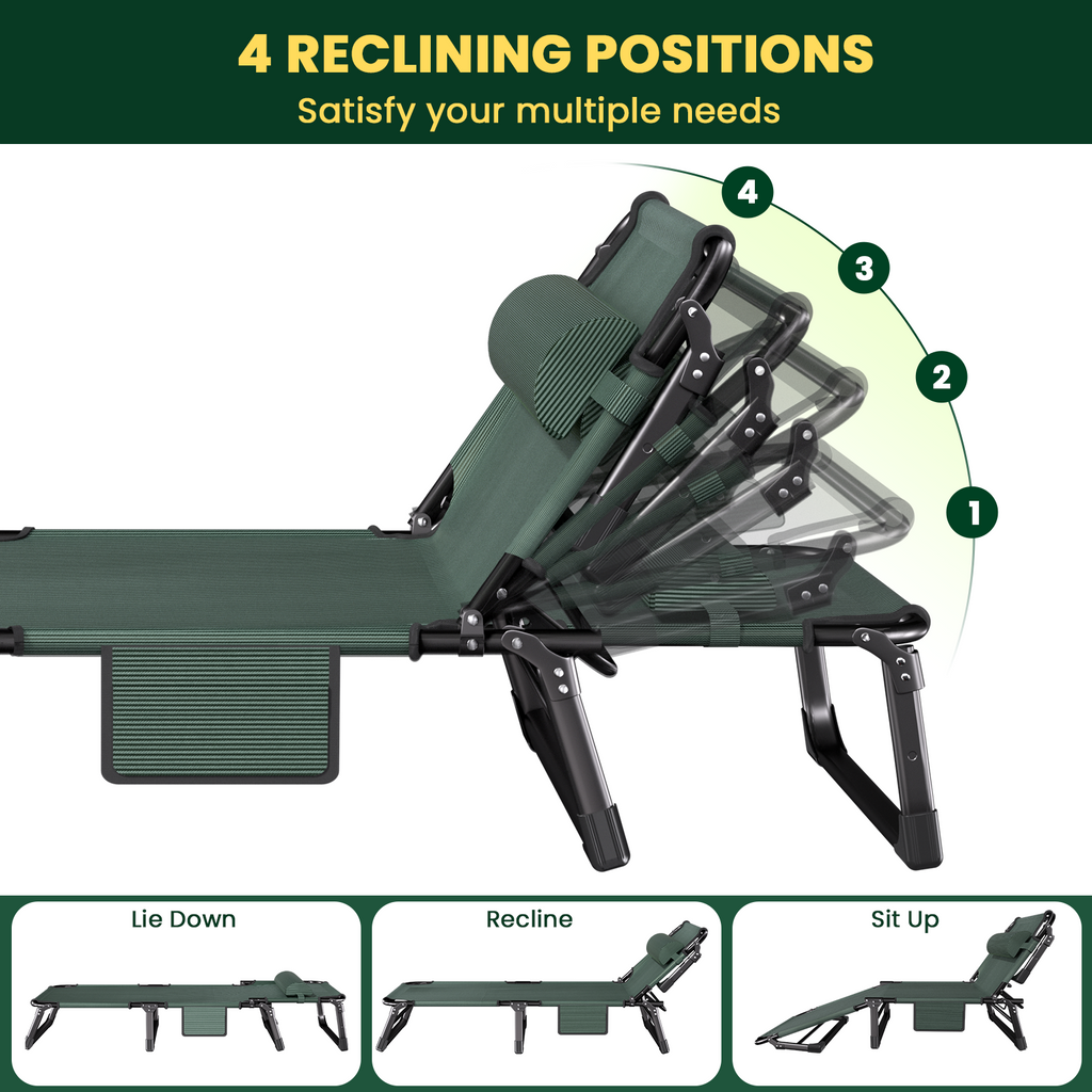 500lbs Load,4-Position Adjustable Folding Camping Bed Chair - With Pillow & Pillow Pad for Adults, Home Office Nap, Travel, Camping.
